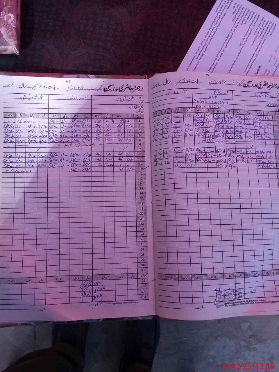 | CNIC | Full Name | Designation | R/C | Absence During Last Calender Month |