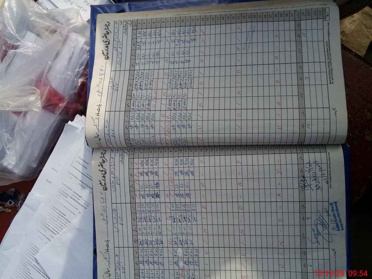 | CNIC | Full Name | Designation | R/C | Absence During Last Calender Month |