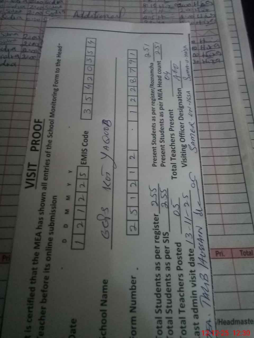 | EMIS Code: 35420554 | Name of School: GGPS KOT YAQOOB | |||