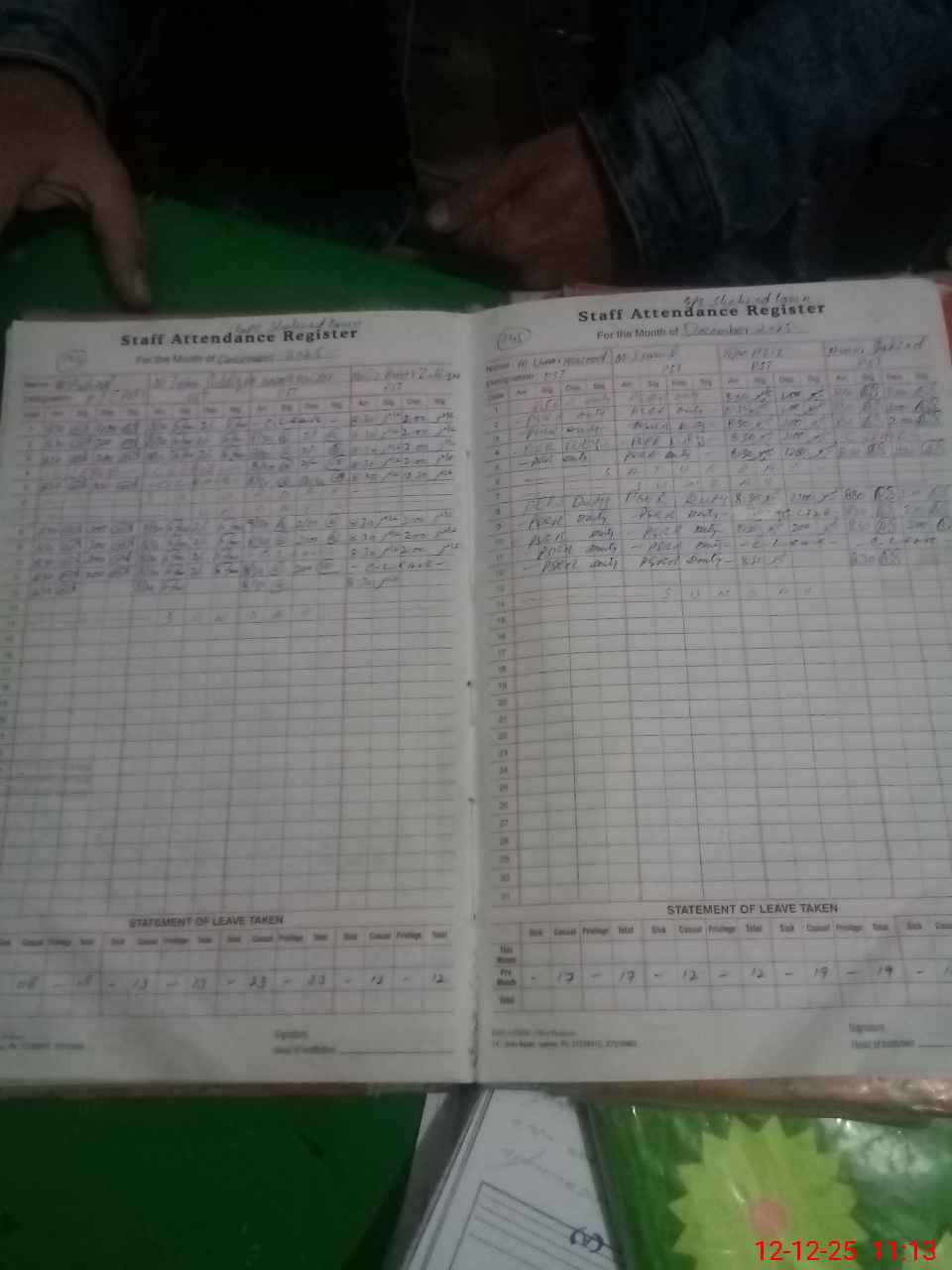 | CNIC | Full Name | Designation | R/C | Absence During Last Calender Month |