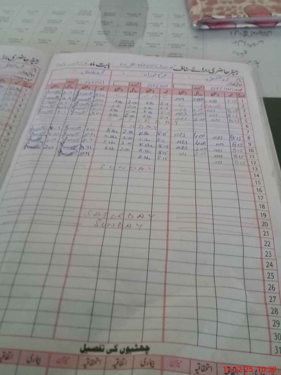 | CNIC | Full Name | Designation | R/C | Absence During Last Calender Month |