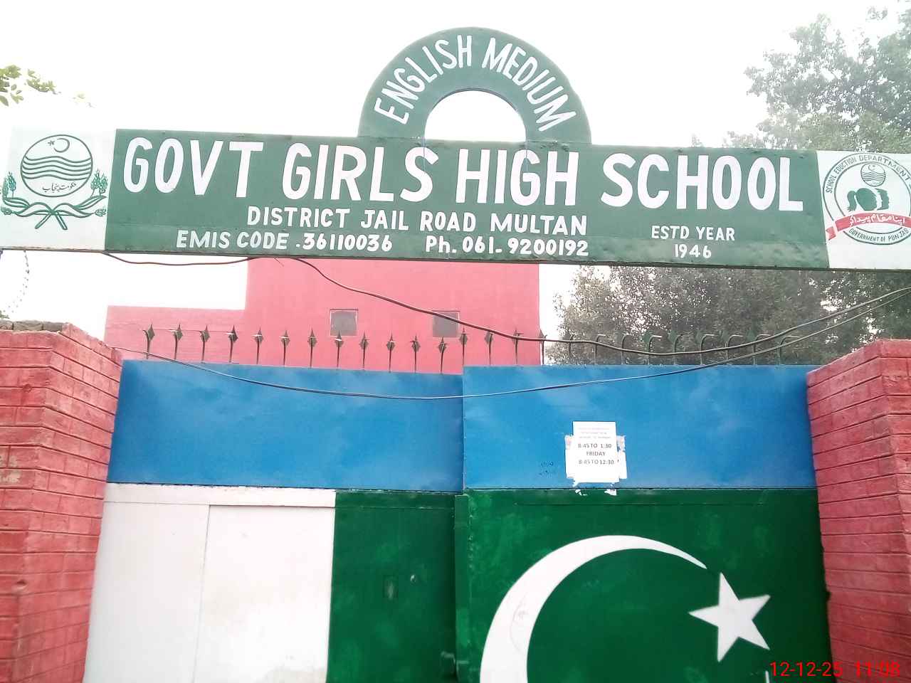 | EMIS Code: 36110036 | Name of School: GGHS DISTRICT JAIL ROAD MULTAN | |||