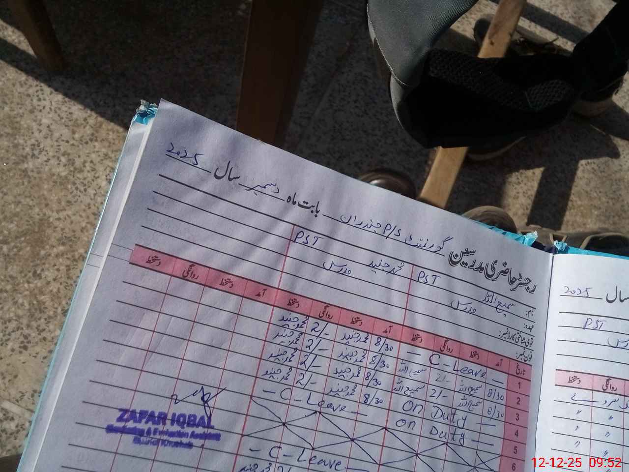 | CNIC | Full Name | Designation | R/C | Absence During Last Calender Month |