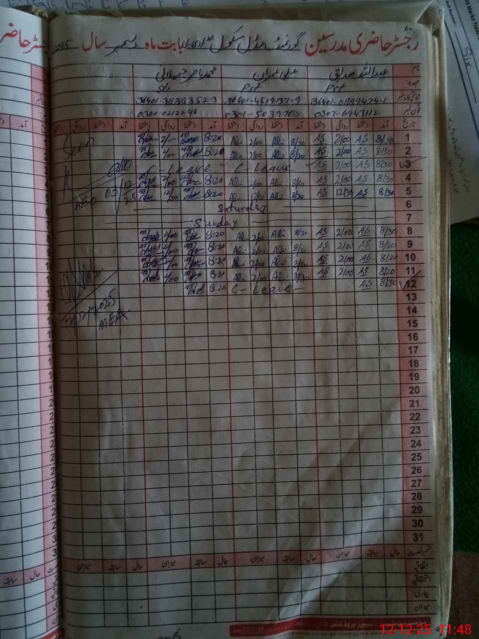 | Name: MU**** US**** Designation: (School Headmaster's/Headmistress's) SST (SCIENCE) Phone/Cell Number: 03**** |