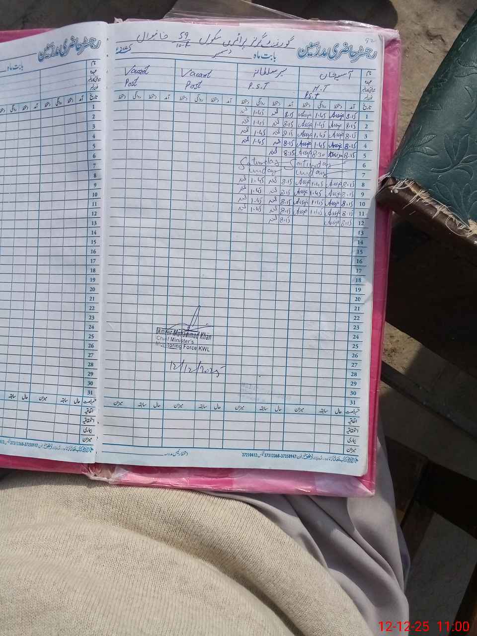 | Name: AS**** KH**** Designation: (School Headmaster's/Headmistress's) PST Phone/Cell Number: 03**** |