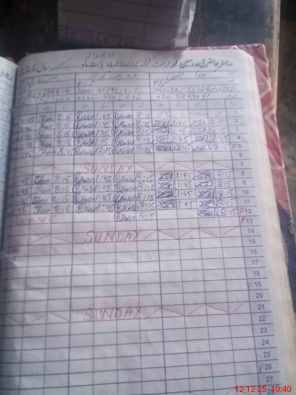 | CNIC | Full Name | Designation | R/C | Absence During Last Calender Month |