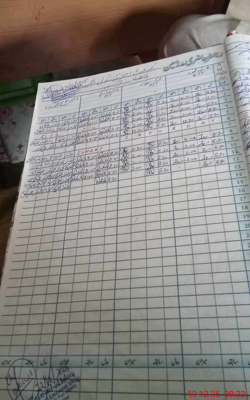 | CNIC | Full Name | Designation | R/C | Absence During Last Calender Month |