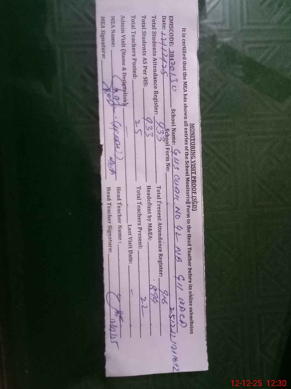 | Certified that this School was Inspected by the Undersigned MEA/DMO Today and the Information Stated Above is as Per Record. | |||||