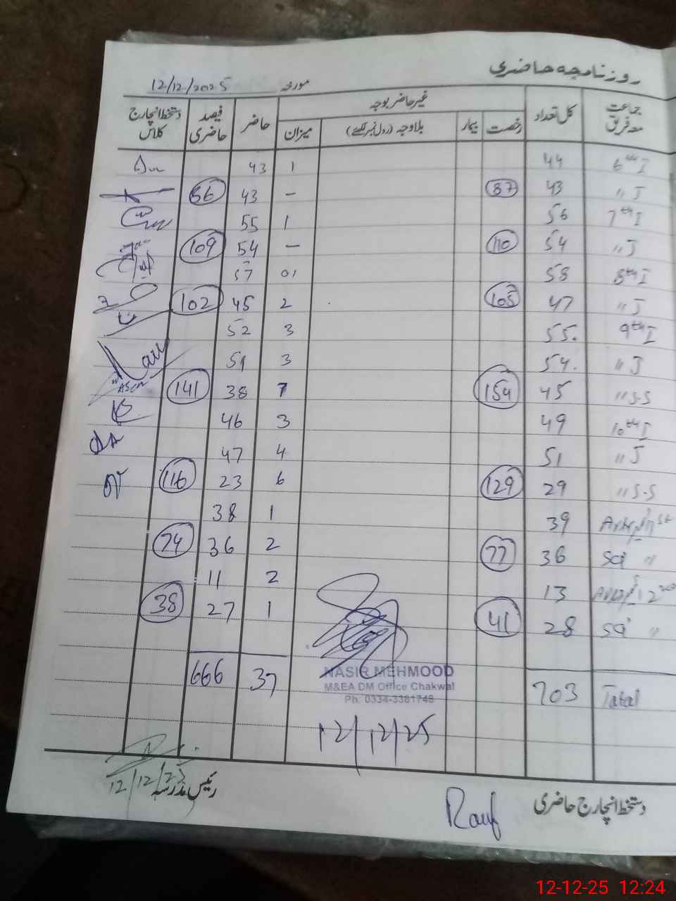 | CNIC | Full Name | Designation | R/C | Absence during last cal. month |