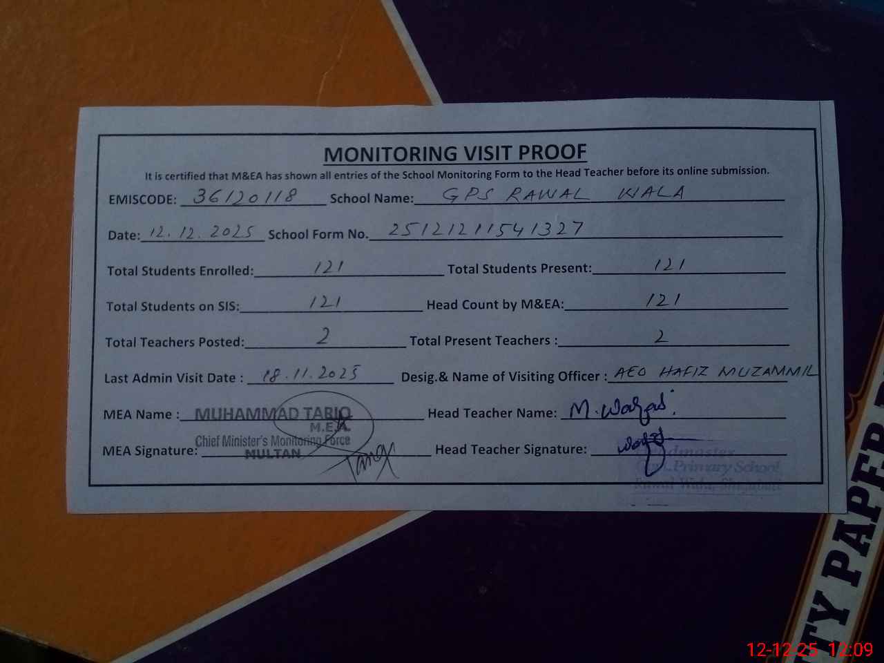 | EMIS Code: 36120118 | Name of School: GPS RAWAL WALA MOZA QAISAR PUR SHUJABAD | |||