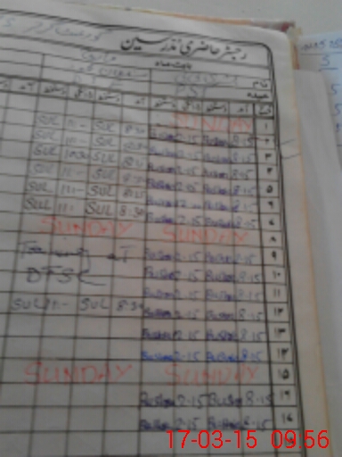 | CNIC | Full Name | Designation | R/C | Absence During Last Calender Month |