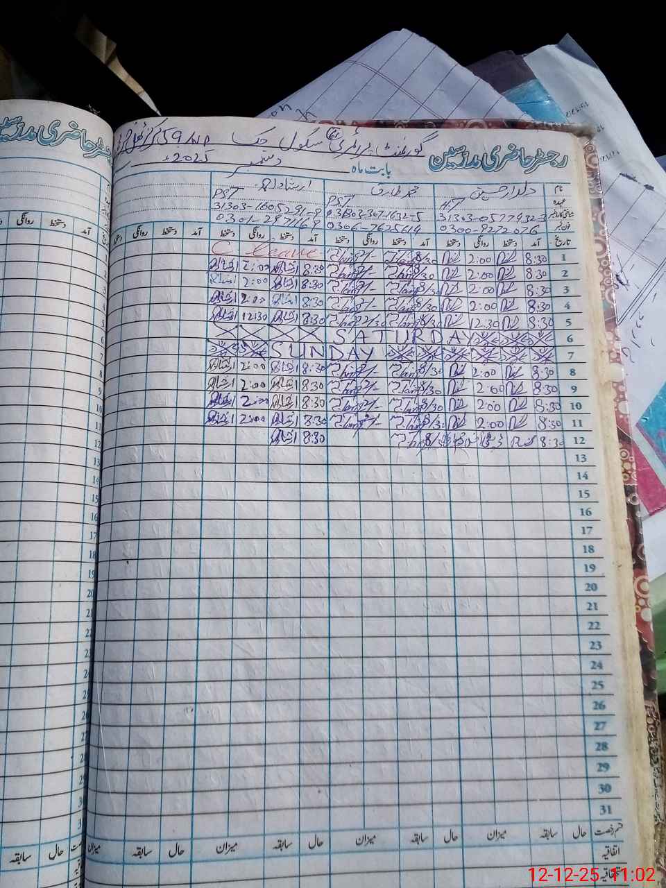 | CNIC | Full Name | Designation | R/C | Absence During Last Calender Month |