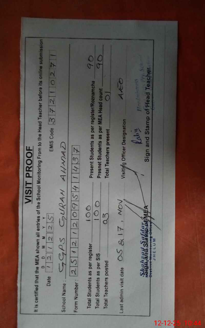 | EMIS Code: 37210271 | Name of School: GGPS GHURAH AHMAD | |||