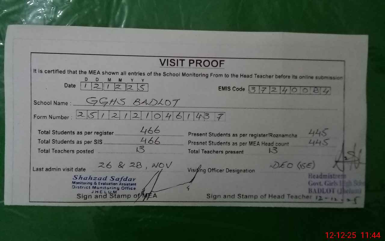 | EMIS Code: 37240084 | Name of School: GGHS BADLOT | |||