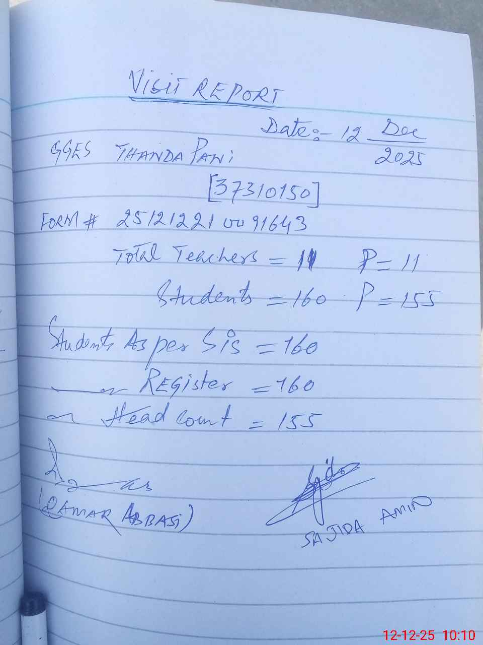 | EMIS Code: 37310150 | Name of School: GGES THANDA PANI | |||