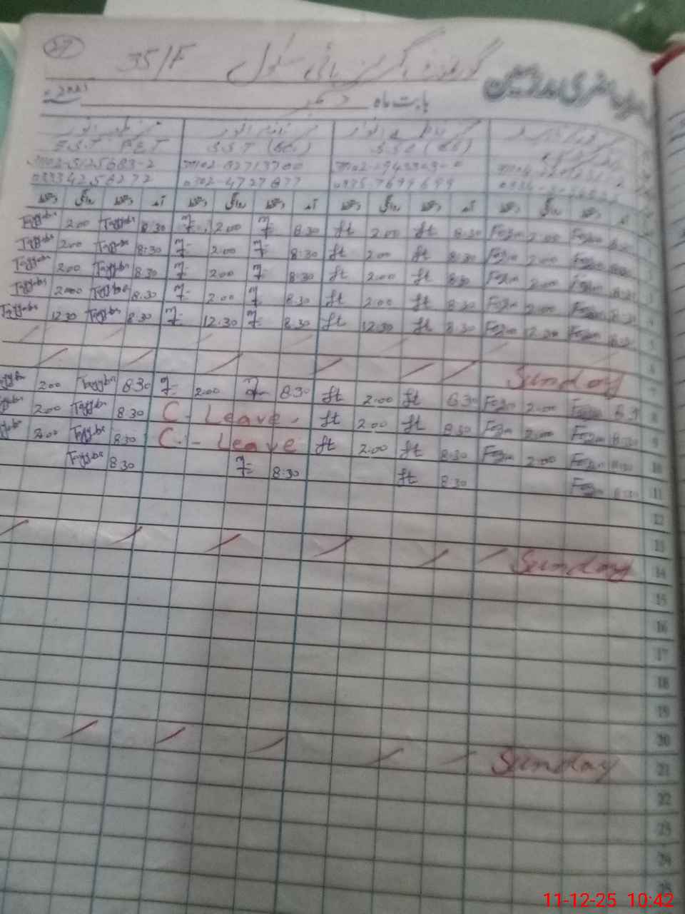 | CNIC | Full Name | Designation | R/C | Absence During Last Calender Month |