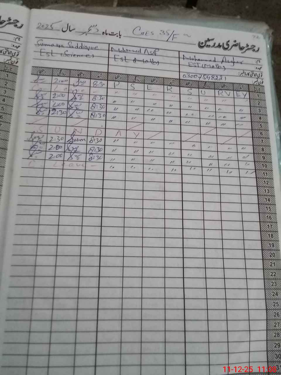 | Name: Mo**** As**** Designation: (School Headmaster's/Headmistress's) EST Phone/Cell Number: 03**** |