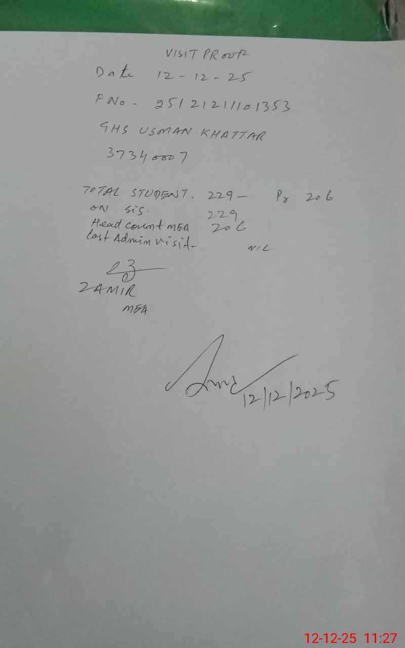 | EMIS Code: 37340007 | Name of School: GHS USMAN KHATTAR | |||