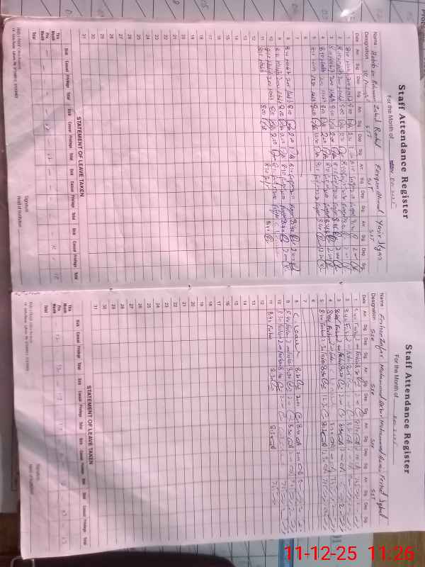 | CNIC | Full Name | Designation | R/C | Absence During Last Calender Month |