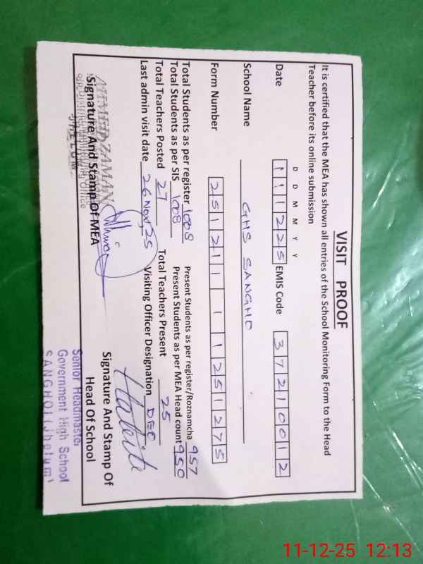 | Name: AM**** ME**** Designation: (School Headmaster's/Headmistress's) HM Phone/Cell Number: 03**** |