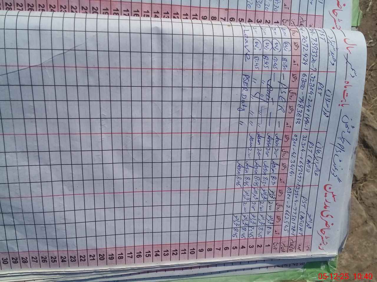 | CNIC | Full Name | Designation | R/C | Absence During Last Calender Month |
