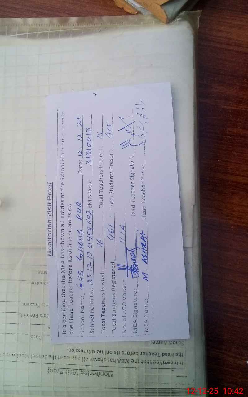 | EMIS Code: 31310013 | Name of School: GHS GHOUS PUR | |||