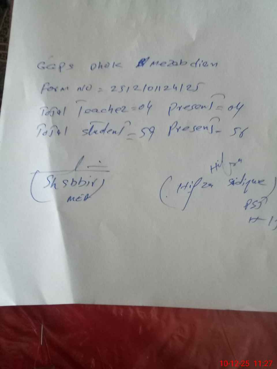 | Attendance Register | Head Teacher | MEA with School | Visit Proof |