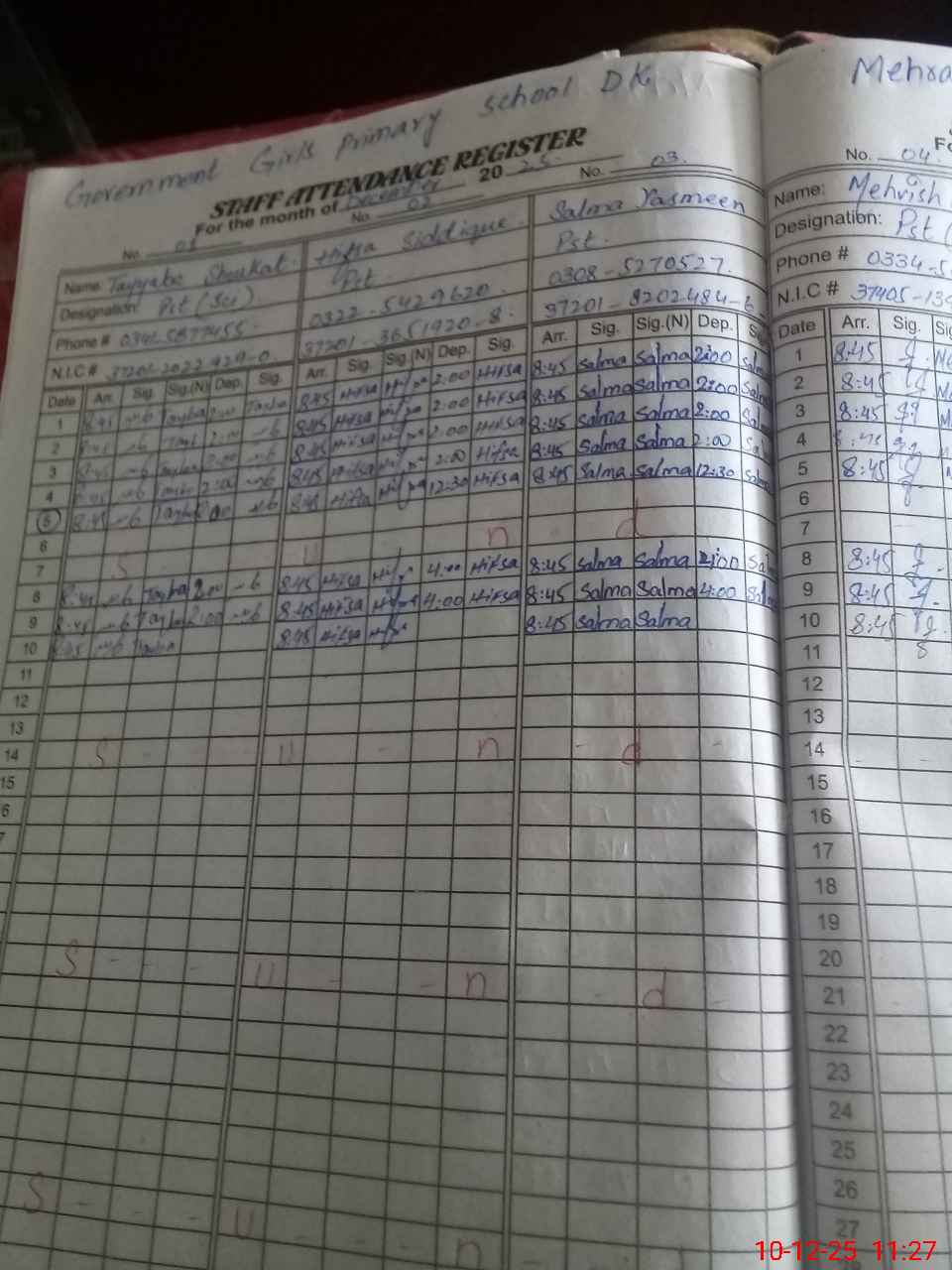 | Name: Hi**** Si**** Designation: (School Headmaster's/Headmistress's) HEADMISTRESS Phone/Cell Number: 03**** |