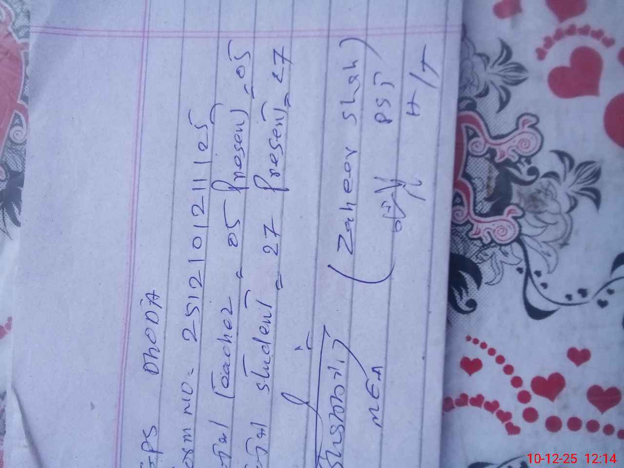 | Certified that this School was Inspected by the Undersigned MEA/DMO Today and the Information Stated Above is as Per Record. | |||||