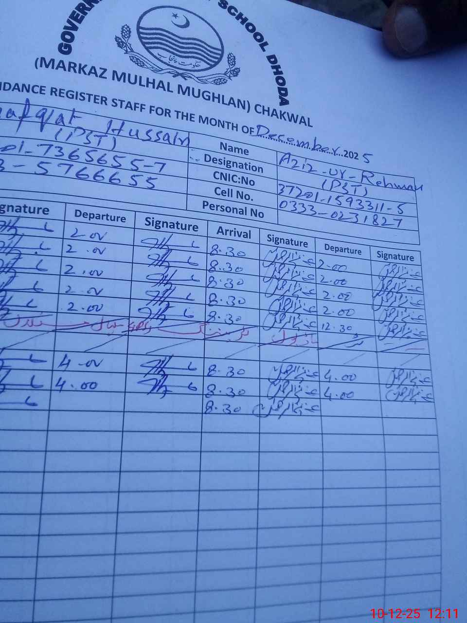 | District: CHAKWAL | Tehsil: CHAKWAL | Markaz: MULHAL MUGHLAN-MALE | Level: Primary | |