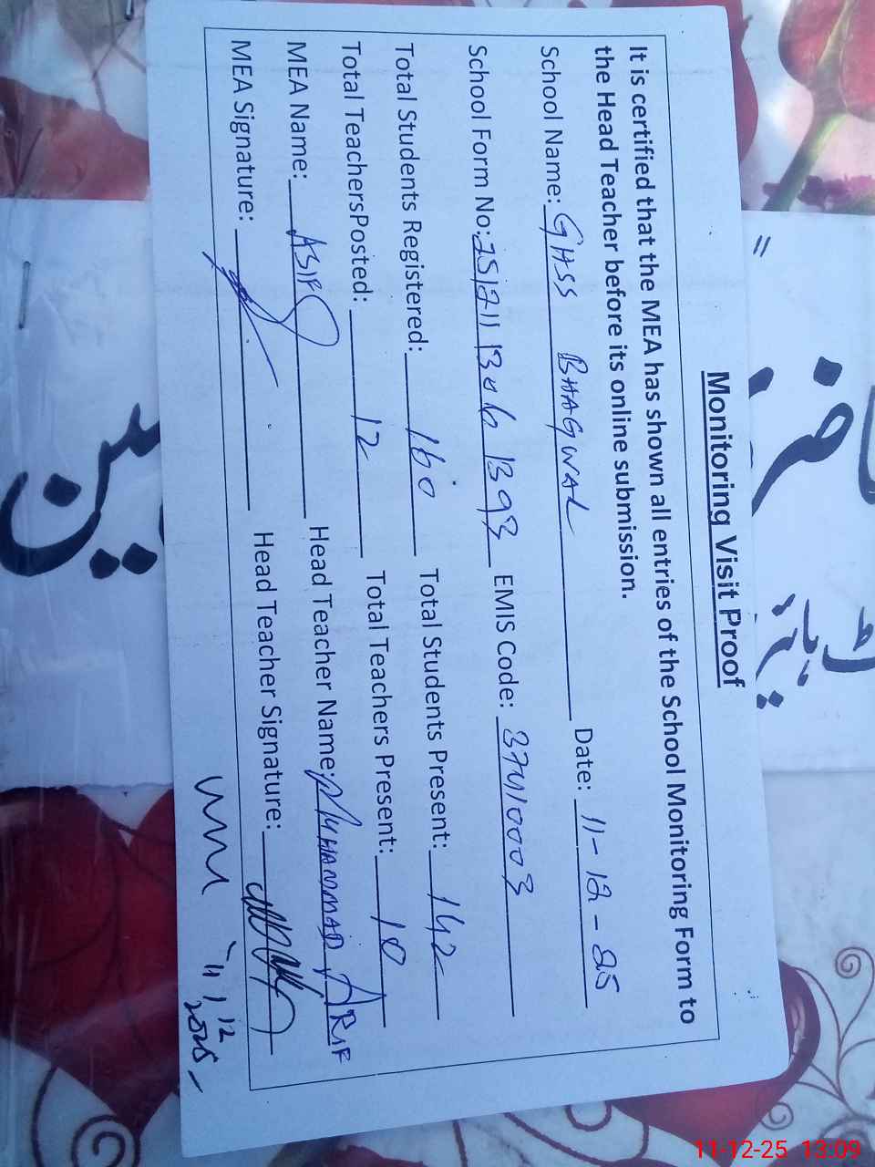 | EMIS Code: 37410003 | Name of School: GHSS BHAGWAL | |||