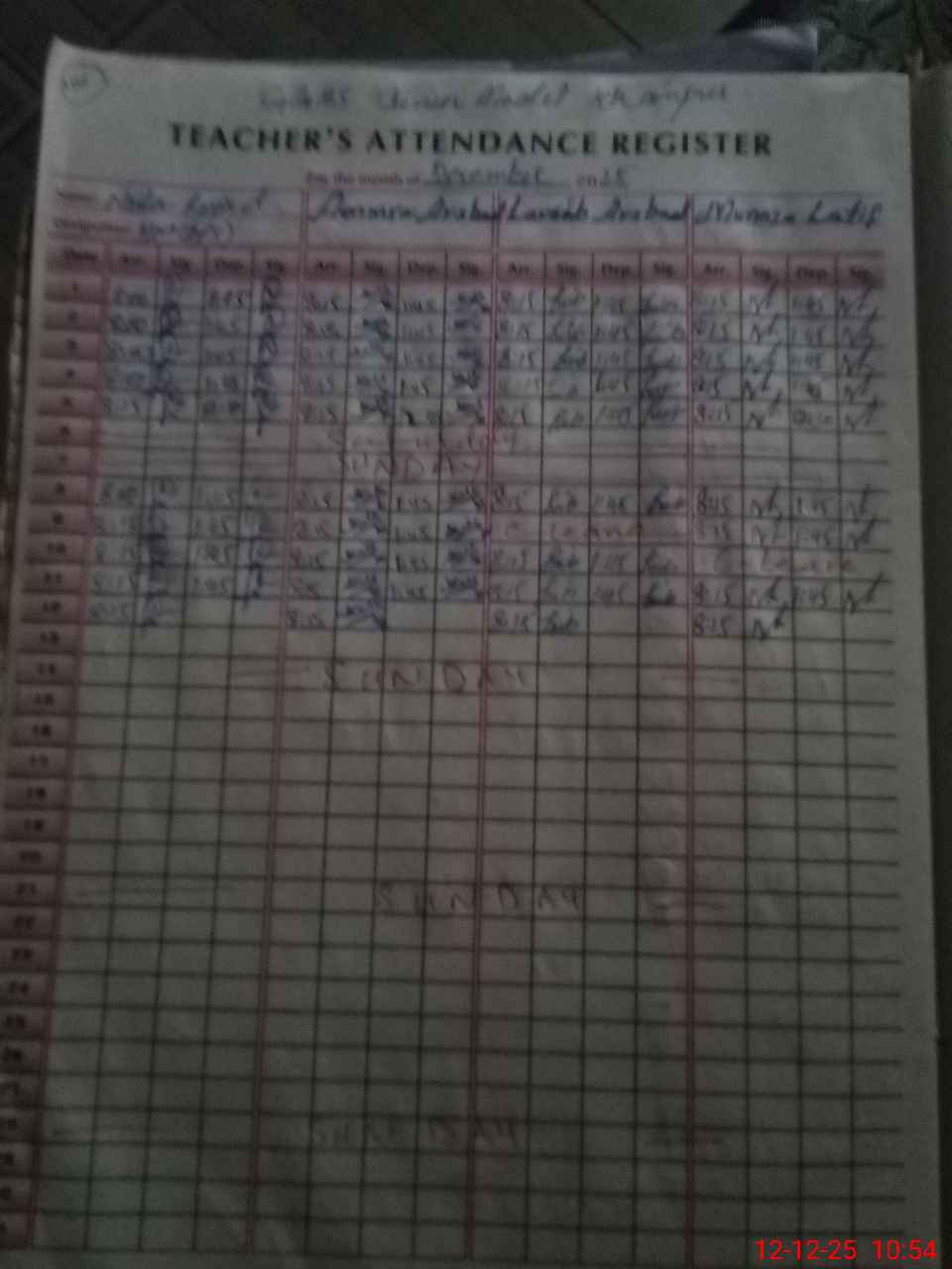 | CNIC | Full Name | Designation | R/C | Absence During Last Calender Month |