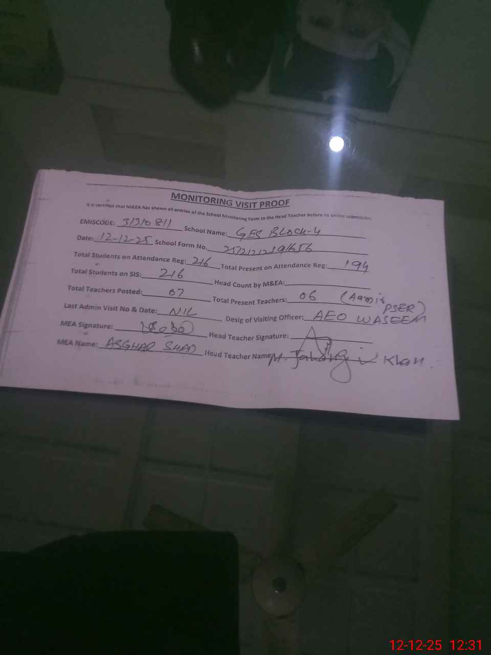 | EMIS Code: 31310811 | Name of School: GES HALQA NO 4 | |||
