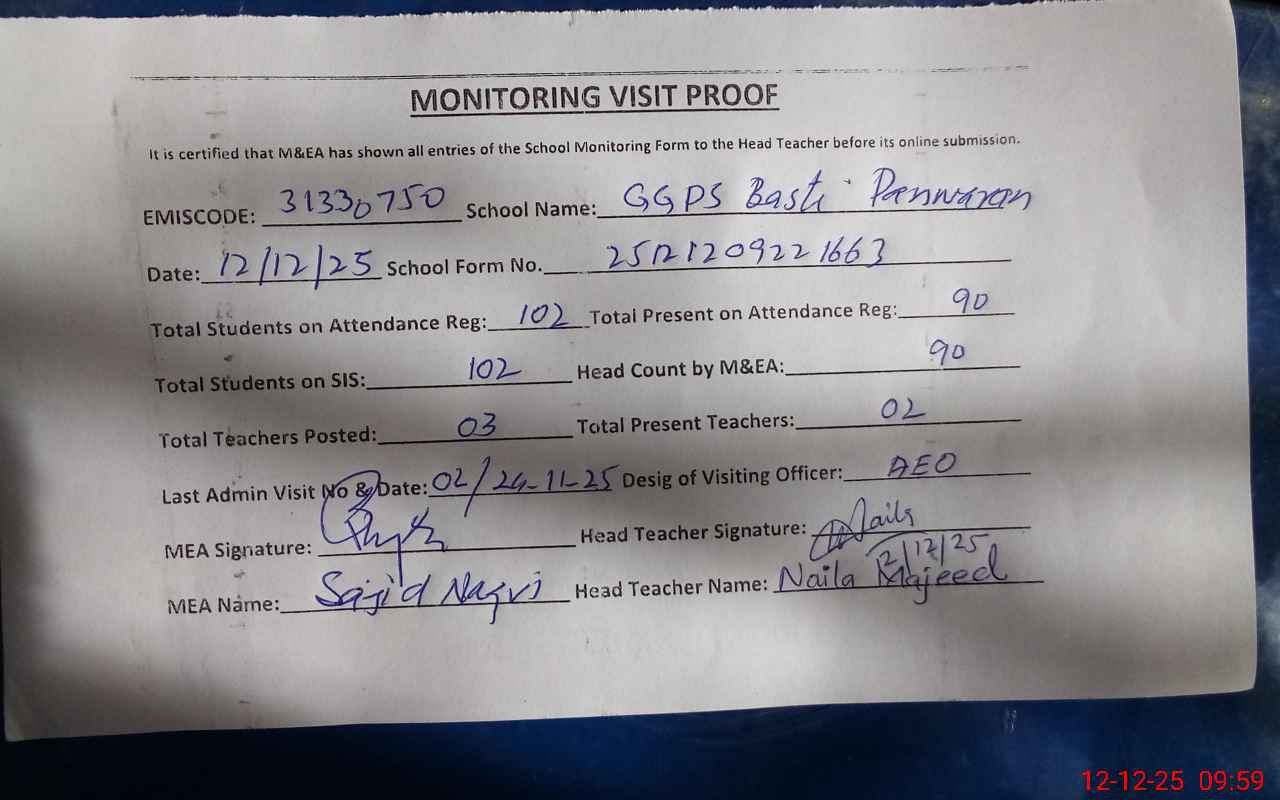 | EMIS Code: 31330750 | Name of School: GGPS BASTI PANWARAN | |||