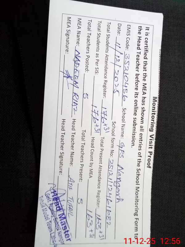 | EMIS Code: 35210456 | Name of School: GPS NANGAR | |||