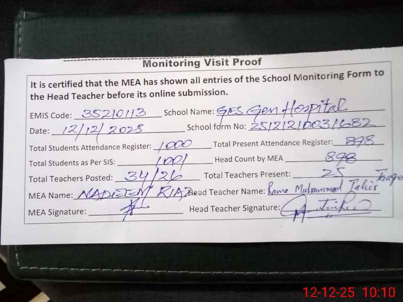 | EMIS Code: 35210113 | Name of School: GES GENERAL HOSPITAL FEROZPUR ROAD | |||