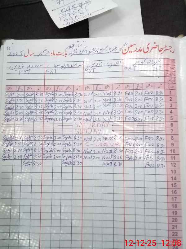 | CNIC | Full Name | Designation | R/C | Absence During Last Calender Month |