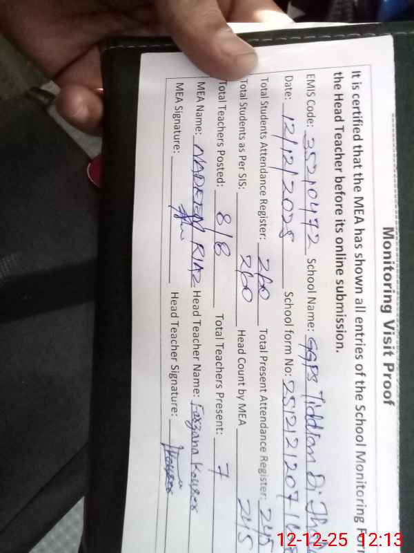 | EMIS Code: 35210472 | Name of School: GGPS TIDDIAN DE JALLAR FEROZ PUR ROAD LAHORE | |||