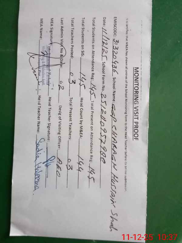 | EMIS Code: 31320436 | Name of School: GGPS CHARAGH HUSSAIN SHAH | |||