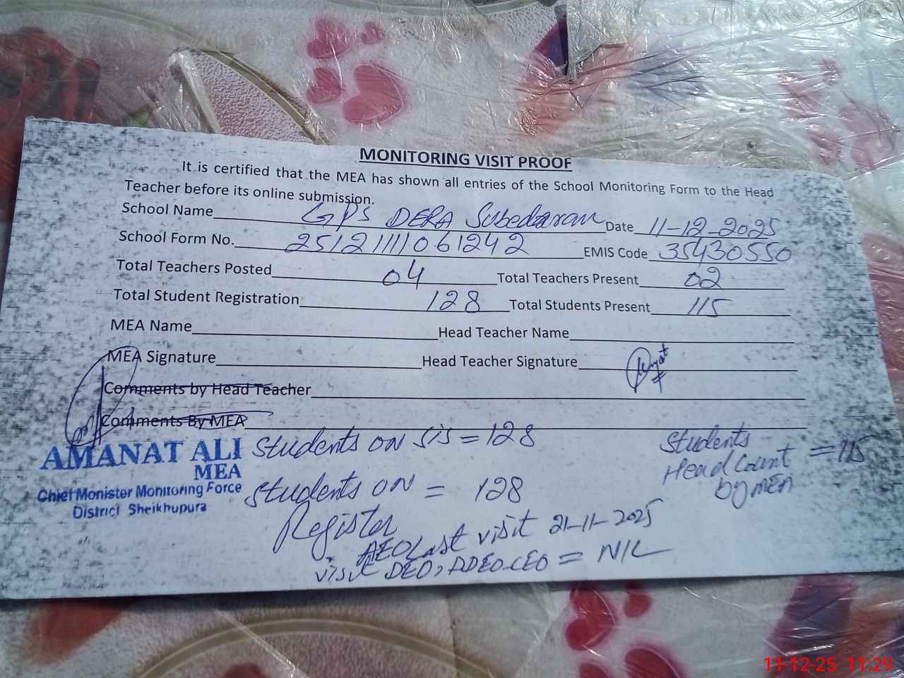 | EMIS Code: 35430550 | Name of School: GPS DERA SUBIDARAN | |||