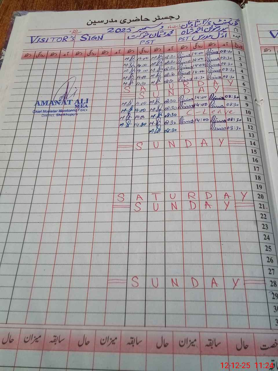 | District: SHEIKHUPURA | Tehsil: SHEIKHUPURA | Markaz: CITY SHEIKHUPURA-MALE | Level: Primary | |