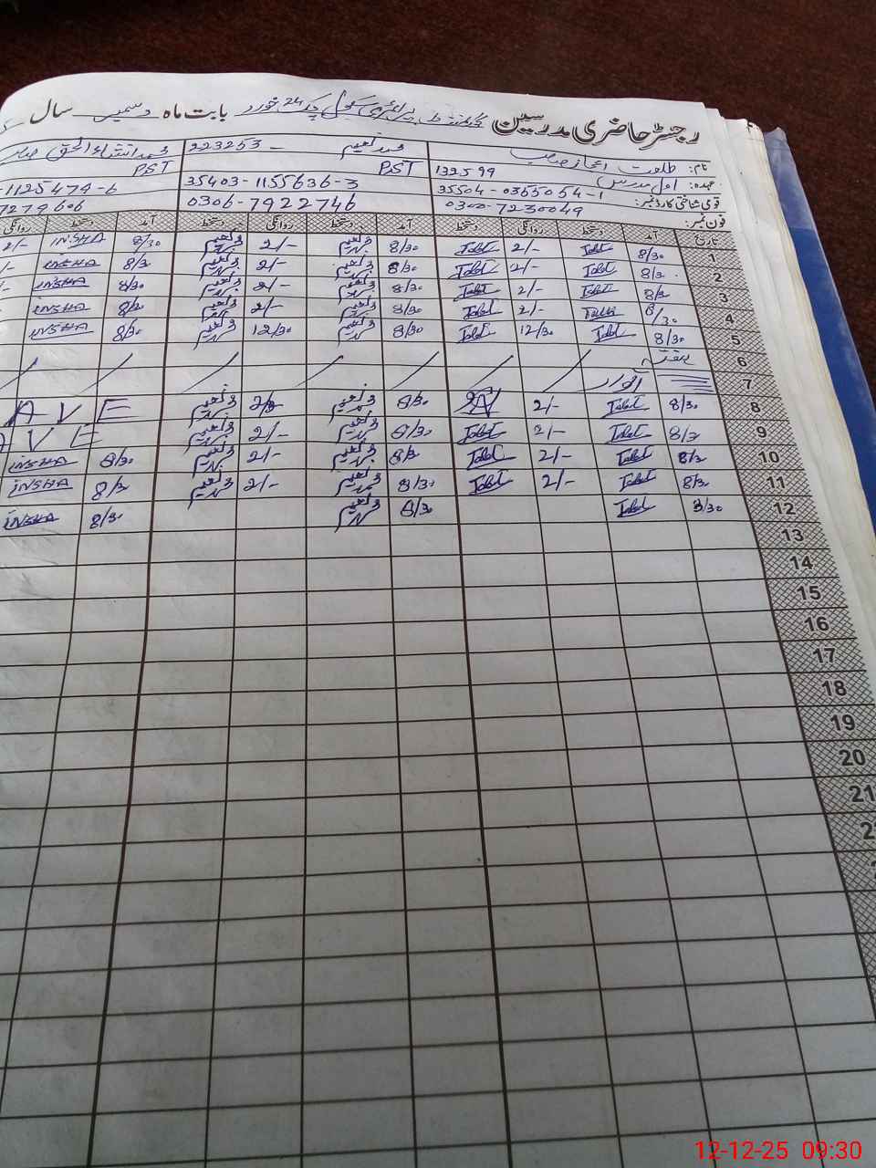 | CNIC | Full Name | Designation | R/C | Absence During Last Calender Month |