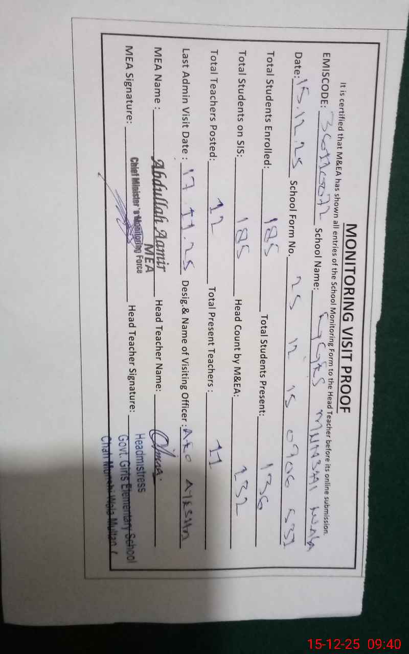 | EMIS Code: 36110072 | Name of School: GGES MUNSHI WALA NEAR BY CHONGI NO.6 | |||