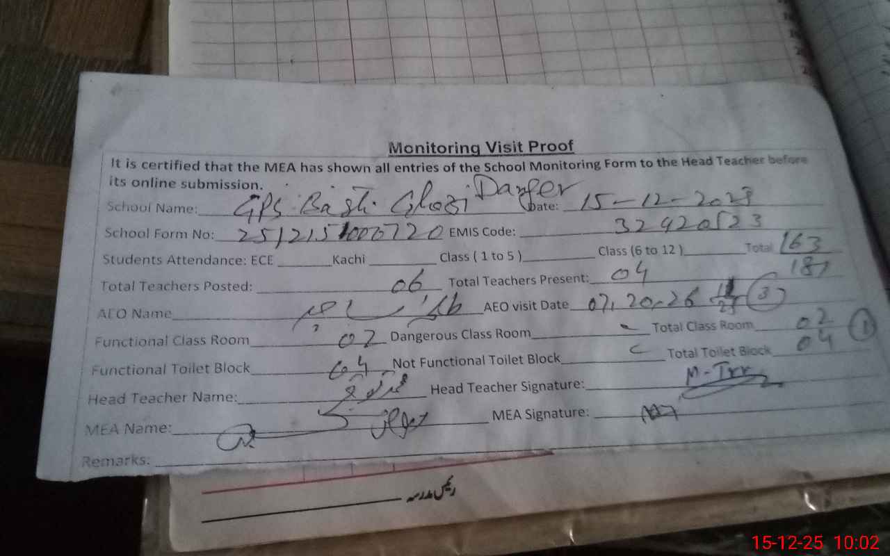 | EMIS Code: 32420523 | Name of School: GPS BASTI GHAZI DANGER | |||