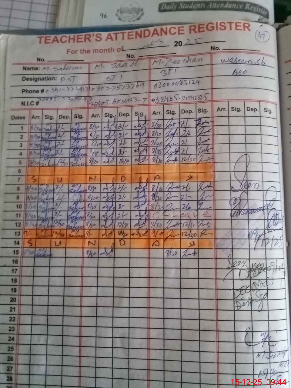 | Name: Mu**** Sa**** Designation: (School Headmaster's/Headmistress's) PST Phone/Cell Number: 03**** |