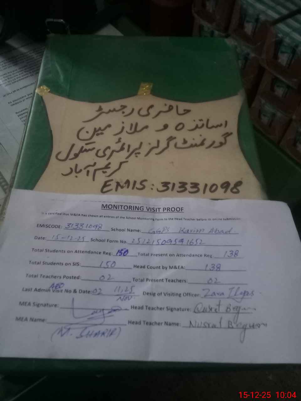 | EMIS Code: 31331098 | Name of School: GGPS KARIM ABAD | |||