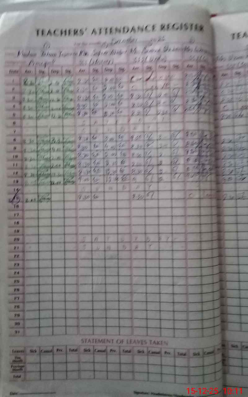 | 37**** | Sa**** Me**** | J C | Regular | 0 | 0 | 0 | 0 | 0 | 0 | 0 | 0 | 0 | Absent (Un-Authorized) |