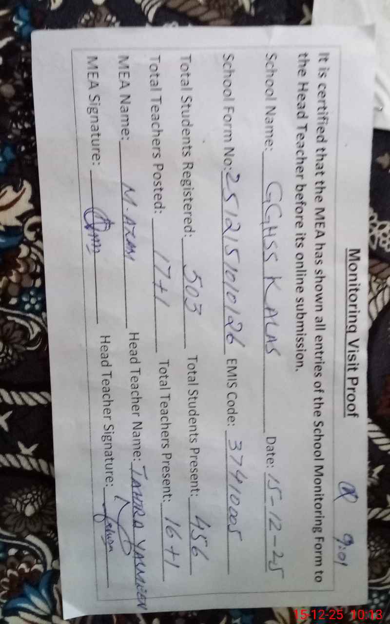| EMIS Code: 37410005 | Name of School: GGHSS KALAS | |||