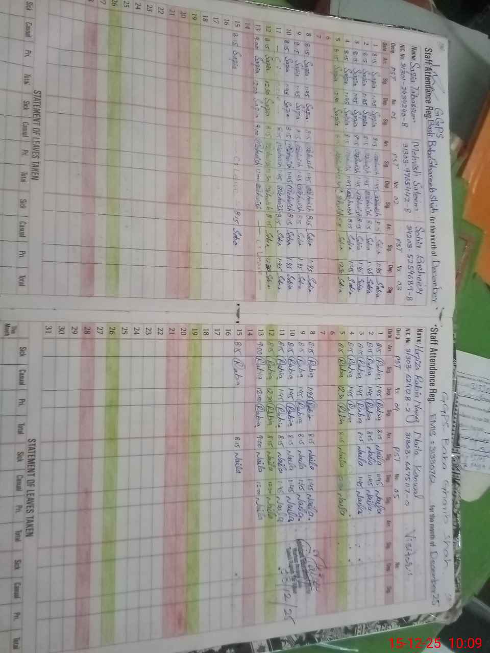| CNIC | Full Name | Designation | R/C | Absence During Last Calender Month |