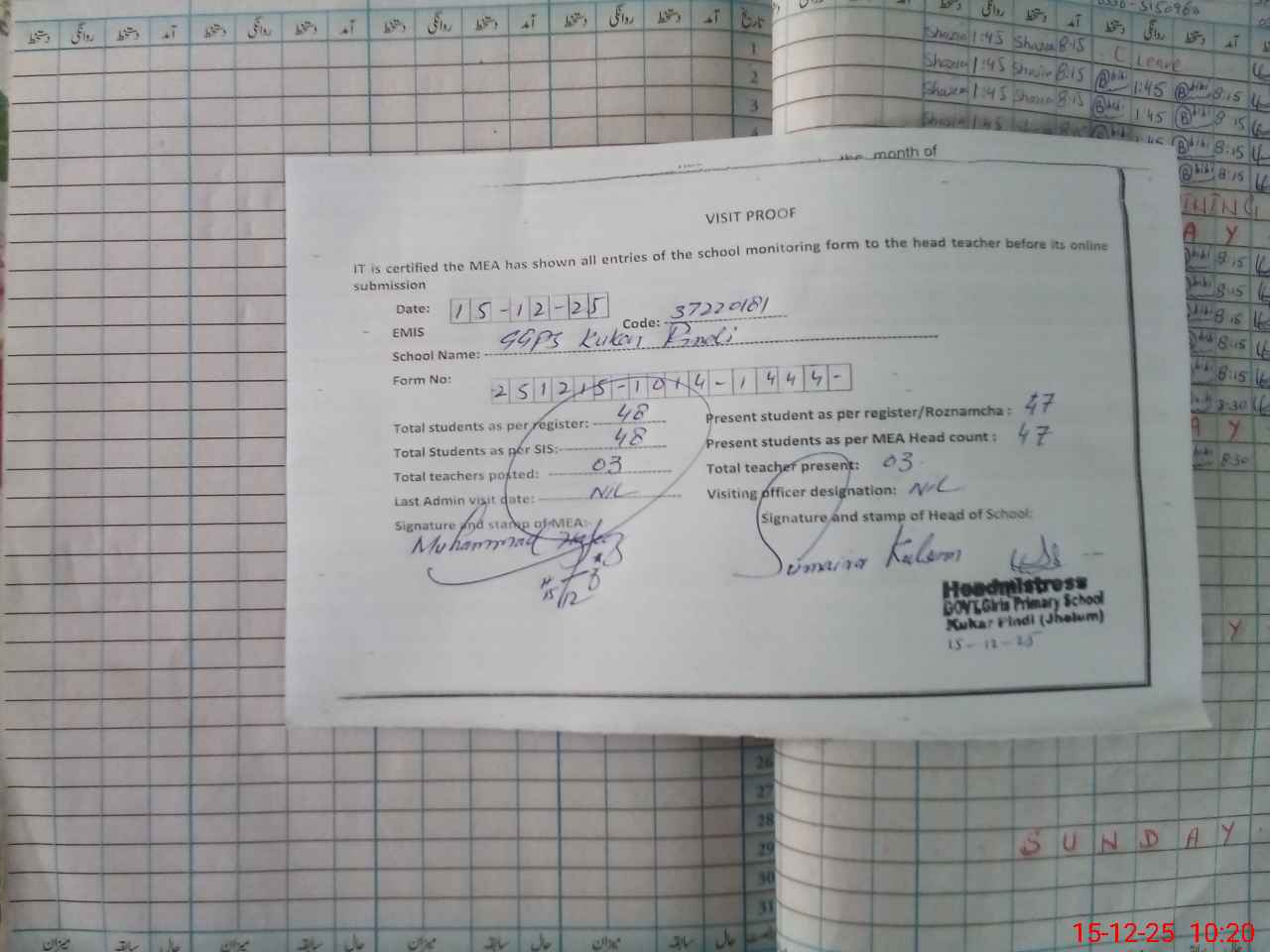 | EMIS Code: 37220181 | Name of School: GGPS KUKAR PINDI | |||